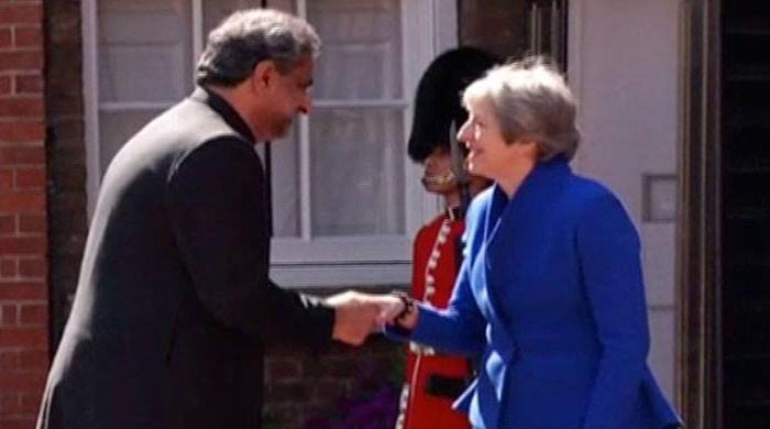 Prime Minister Shahid Khaqan Abbasi meeting with British PM Theresa May at Buckingham Palace. Photo: Geo NewsLONDON: Prime Minister Shahid Khaqan Abbasi met British counterpart Theresa May on Thursday at the Buckingham Palace.The premier is...