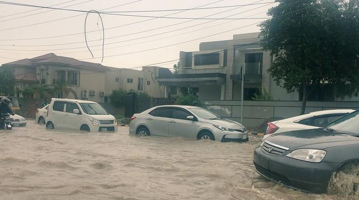 Roads flooded in Lahore's Defence as 252 millimetres of rain recorded in the last 24 hours. Photo: Benazir Shah/ GeoLAHORE: The death toll from rains in the provincial capital rose to six on Tuesday. According to sources in Rescue 1122, two people...